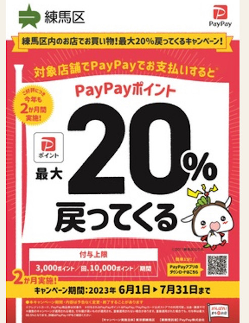 練馬区が実施するpaypayのキャンペーンがまた始まりました